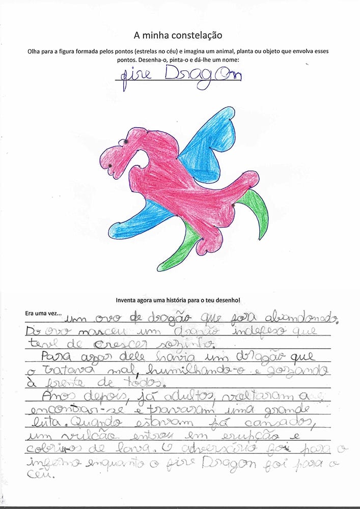 Partindo dos pontos que representam as estrelas das seguintes constelações, imagina um animal, planta ou objeto que envolva esses pontos – desenha-o, pinta-o e dá-lhe um nome!